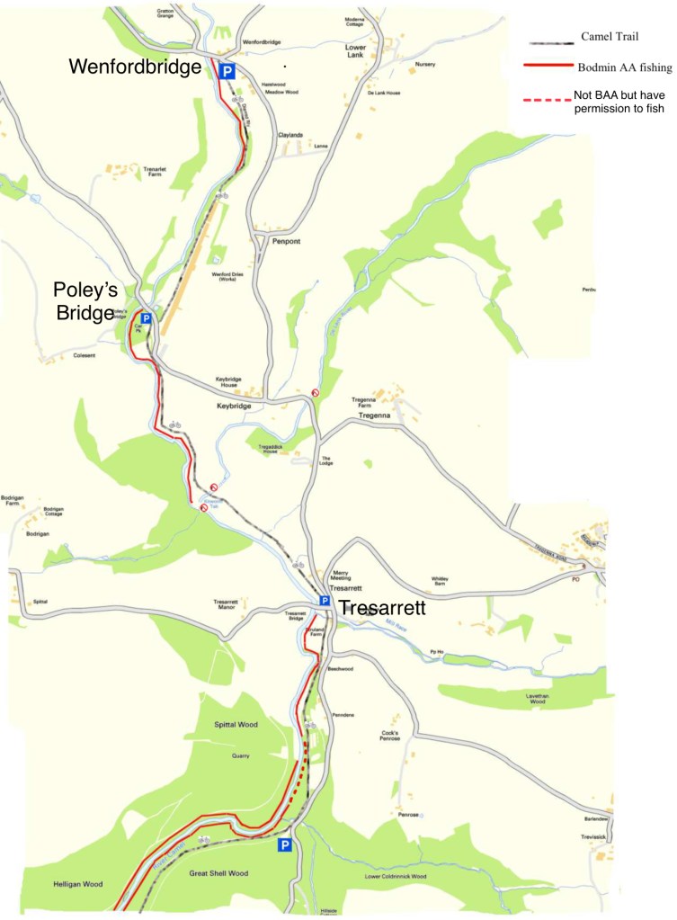 Below you will find maps of our fishing from polbrock bridge up too trecarne.